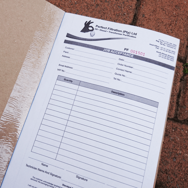 Our professionally bound invoice books are printed on NCR paper (so no carbon is required). Designed to meet your exact requirements, these essential business tools will do a great job of recording all your transactions with precision.